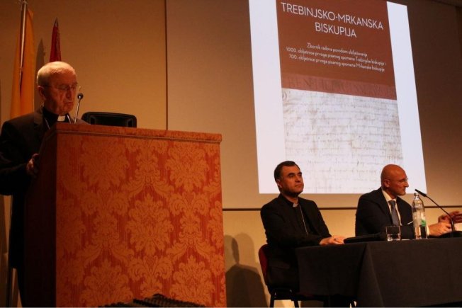 -Visoka obljetnica dvaju biskupija pružila je autorima prigodu da iznesu sve što je zabilježeno, napisano ili uklesano u kamenu: od radosti, žalosti, tjeskobe do tragova nade i novih perspektiva. Obljetnica prvog pisanog spomena od prije 1000 godina bila je dobar povod listati požutjele stranice i donijeti na svjetlo dana ono što je zapisano. To je vremensko portretiranje za ljude vrlo važne prošlosti, a pamćenje je sastavni dio identiteta svake zajednice, društva i naroda. O tome sugestivno svjedoči i ovaj bogato uređeni zbornik koji nas potiče da ne prestajemo zahvaljivati Gospodinu za silnu baštinu koju smo naslijedili- rekao je na promociji umirovljeni zadarski nadbiskup Puljić. Naglasivši da “godišnjice nisu nikakav nostalgični vapaj za onim što je bilo niti labuđi pjev nečem što je povijest zabilježila“ umirovljeni je nadbiskup citirao papu Pavla VI koji je 1963. rekao arhivarima da “prikupljeni radovi pružaju priliku svima, a posebno stanovnicima tog blagoslovljenog terena Trebinjsko-mrkanske biskupije osjetiti, čuti i prepoznati otajstvene tragove onoga koji više od tisuću godina prolazi i blagosilja ljude i arhive“ i potom predstavio dio radova iz sadržaja Zbornika.