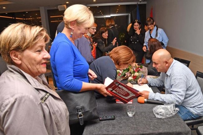 "Jedna je knjiga moja, a druga je profesora doktora Iva Goldsteina i ovim putem mu se zahvaljujem što je ponovno došao k nama u Dubrovnik. Bio je prošle godine kad smo isto promovirali njegovu knjigu, međutim naš Ivo je jako vrijedan i on svake godine izbaci baš jednu knjigu. Zahvaljujem se također doktoru Franku Miloševiću, koji je danas doputovao iz Vela Luke i koji je također s nama često ovdje. Zahvaljujem se i svima vama koji ste došli, koji ste s nama ovdje. Međutim, ima par osoba kojima se moram posebno zahvaliti. Na prvom mjestu to je moj suprug, zahvaljujem mu što me je podržavao. Također se zahvaljujem mom ravnatelju Ivici Puljiću i njegovoj supruzi. Zahvaljujem se mom izdavaču, gospodinu Izetu Spahoviću, što je bio vizionar i imao sluha i našao sredstva i mogućnosti da izda i financira moju knjigu, kao i članovima njegove udruge. Zahvaljujem se GO SDP-a Dubrovnik, Aniti Bonačić Obradović, koja također sudjeluje u ovom našem zajedničkom Projektu. Zahvaljujem se Miloradu Vukanoviću ispred Srpskog narodnog vijeća Grada Dubrovnika, mi smo isto partneri u jednoj drugoj akciji. Zahvaljujem se i Udruzi antifašista Stoca, kao i kolegama s doktorskog studija", kazala je za početak predsjednica Udruge antifašista Dubrovnik i autorica knjige.