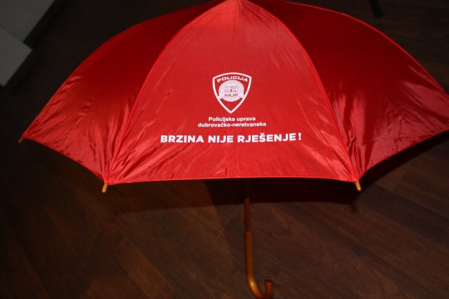 Osim toga, Odjel za sigurnost cestovnog prometa dao je izraditi kišobrane s porukama za vozače vezanim za brzinu. Kišobrani mogu biti puno više od običnih proizvoda koji nas štite od kiše, uz malo mašte, oni na simboličan način šalju poruku i dobivaju još jednu dimenziju zaštite.