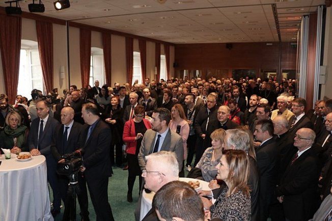 Biskup Mate Uzinića održao je danas tradicionalno primanje u povodu Božića i božićnih blagdana u dvorani Ivana Pavla II.