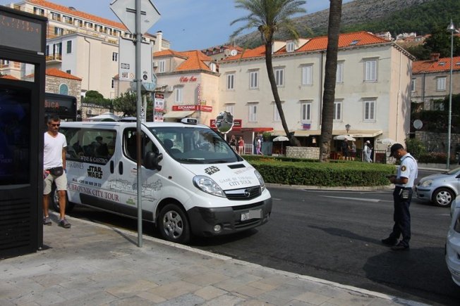 U jutarnjim satima uobičajen prizor na Pilama, na mjestu namijenjenom autobusima, nalazi se vozilo prijevoznika putnika.
