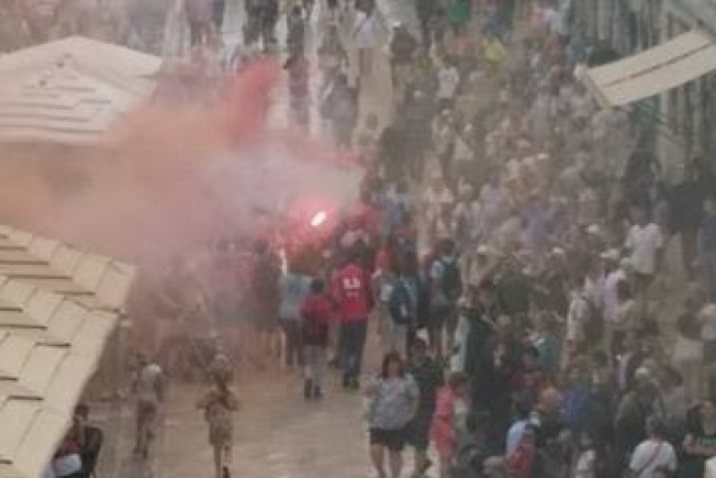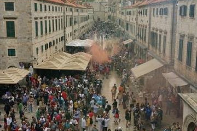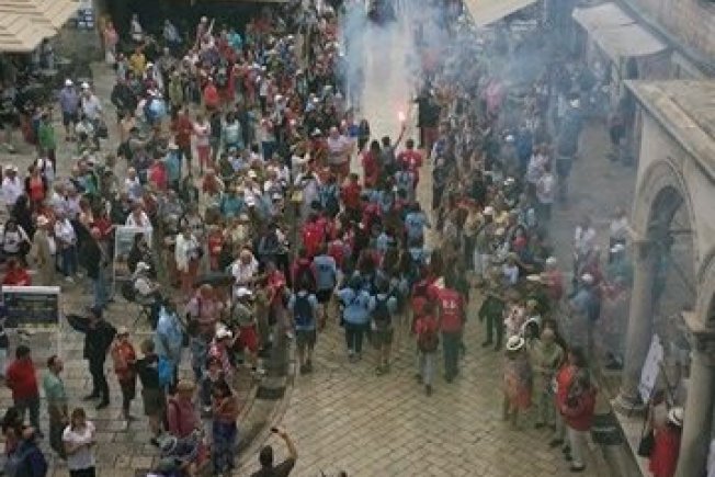 Uz bengalke, zvižduke i pjesmu prošli su kroz masu turista preko Straduna. Njihovo dobro raspoloženje nije moglo pokvariti ni loše vrijeme.