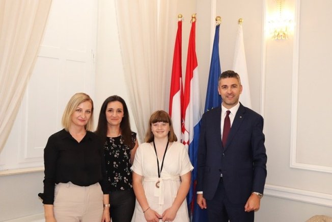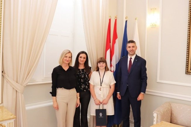 Povodom osvajanja drugog mjesta na međunarodnoj jezičnoj olimpijadu, gradonačelnik Mato Franković primio je danas Romanu Delić, učenicu petog razreda Osnovne škole Montovjerna. Prijemu su nazočili i ravnateljica Osnovne škole Montovjerna, Lucija Vujica te Romanina mentorica Ana Šimunović.
