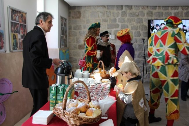 Uz krafne i male maškare, direktorica Turističke zajednice grada Dubrovnika, Romana Vlašić i pročelnik Grada Dubrovnika za prosvjetu i šport, Miho Katičić obratili su se prigodnim riječima i predstavili program Dubrovnačkog karnevala.