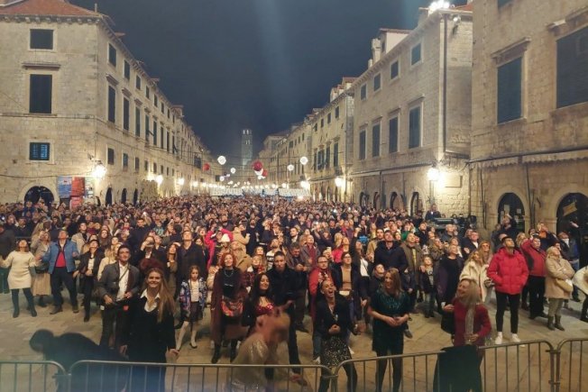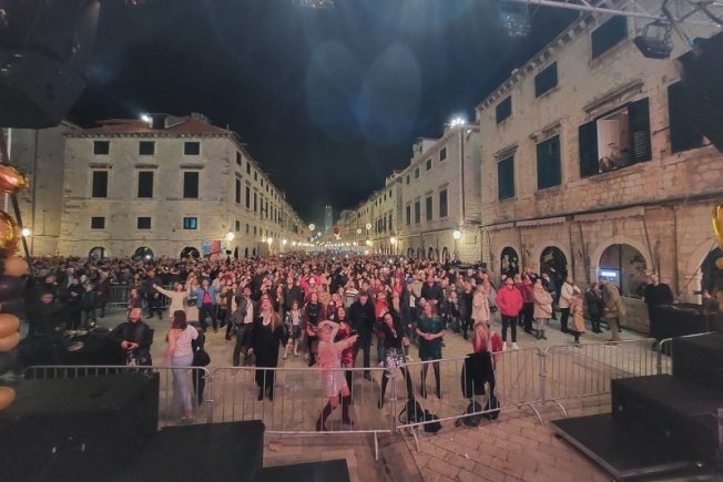 Dubrovčane su na Stradunu zabavljao bend 'Vatra' do pet minuta prije ponoći, nakon čega je na pozornicu stigao uvijek rado viđeni dubrovački 'Silente'. Stradun je bio 'krcat' ljudima koji su se željni dobre zabave spustili na najljepšu ulicu svijeta i mahnuli 2021. godini, a poželili da nam nova 2022. godina bude puno bolja nego ova prethodna.