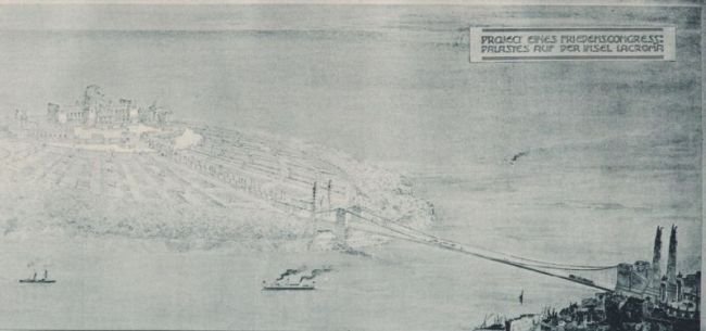 Ideja je to mladog austrijskog arhitekta Alfreda Fenzla. Osim, mosta, mladi je Fenzl u svom radu na Lokrumu zamislio Kongresnu palaču mira unutar koje bi se nalazile knjižnice, dvorane za sastanke, kongresne dvorane i slični sadržaji. Fenzlov rad svojedobno je bio objavljen u austrijskom arhitektonskom časopisu, a pobrao je mnoge pohvale struke. Podsjetimo, u to su vrijeme Habsburgovci bili vlasnici otoka, sreća da je ubrzo počinjao Prvi svjetski rat (tko kaže da je rat uvijek loš?), inače bi Austrijanci iskasapili Lokrum.
