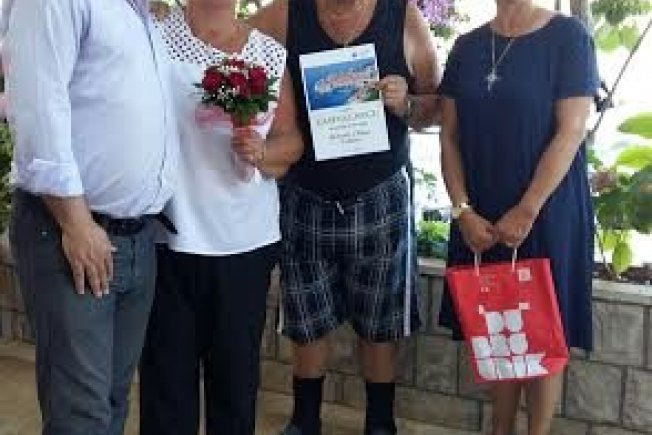 Obitelji Groeber, Jelka Tepšić i Siniša Žakula uručili su cvijeće i prigodne poklone u ime Turističke zajednice grada Dubrovnika, koja na ovaj način odaje priznanje dugogodišnjim gostima i njihovim domaćinima, koji su - na ovaj način - i jedni k drugi najbolji promotori Hrvatske, Dubrovnika i Zatona. Radujemo se ponovnom viđenju s obitljei Groeber dogodine u Zatonu!