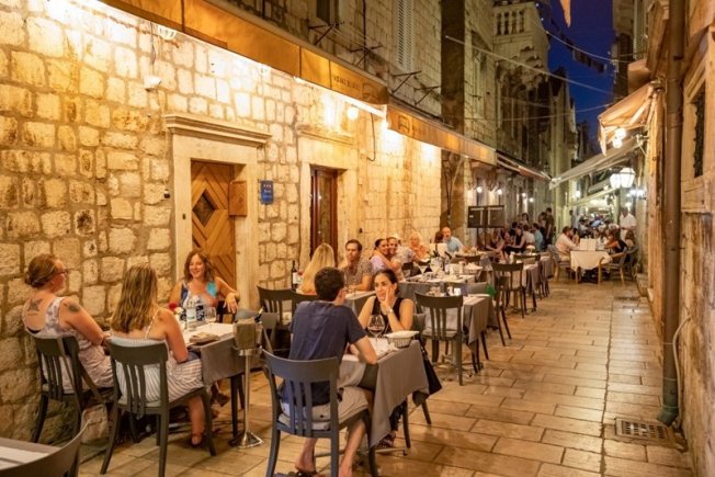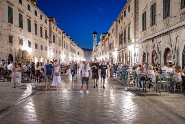 Fotografije sinoćnjeg noćnog života na Stradunu otkrivaju kako je sve više turista u gradu koji izlaze i provode se u povijesnoj jezgri. Stradun je bio pun šetača, a obližnji kafići bili su dobro popunjeni.