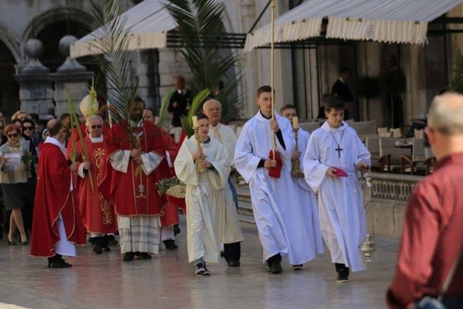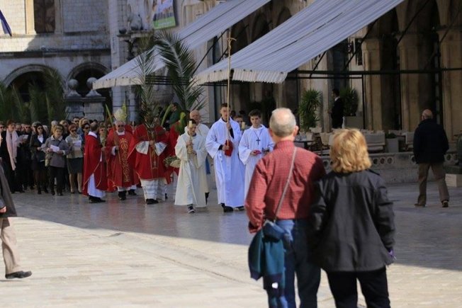 Stradun je bio cijeli u znaku palminih grančica, a nakon blagoslova, brojne Dubrovkinje i Dubrovčani su se u procesiji uputili do dubrovačke katedrale gdje je služena misa.