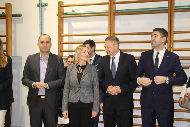 Ministrica regionalnoga razvoja i fondova Europske unije Gabrijela Žalac i gradonačelnik Mato Franković sa suradnicima obišli su novoobnovljenu školsku dvoranu u Osnovnoj školi Lapad.