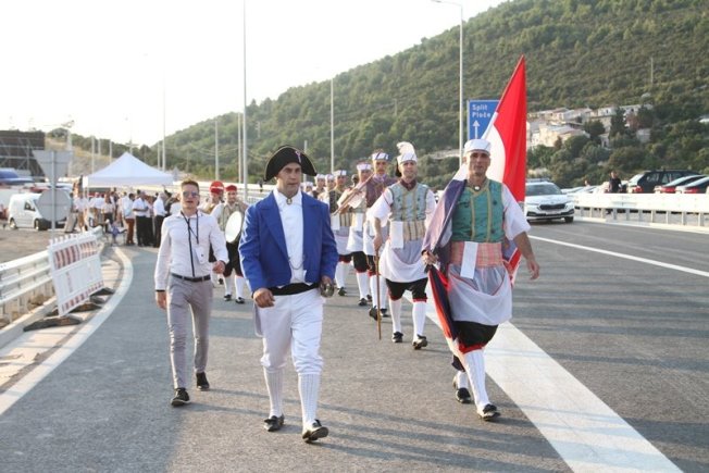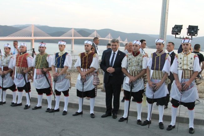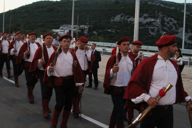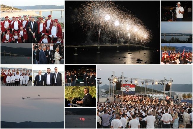 Dubrovački dnevnik bio je u Komarni gdje su stigli brojni visoki uzvanici, među kojima premijer Andrej Plenković i predsjednik Zoran Milanović. Nakon prigodnih govora i programa, uslijedio je spektakularni vatromet, opucali su Trombunjeri, a mostom prošli Niko Pulić i Rimčeva 'Nevera', kao i branitelji s motorima. iznenađenje večeri su bila Krila Oluje, a na stotine je brodica okružilo most.