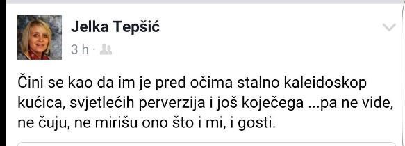 Inače, Tepšić je objavila kako joj se čini kao da 'im je pred očima stalno kaleidoskop kućica, svjetlećih perverzija i još koječega'.