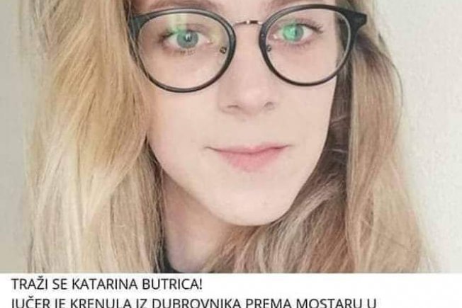 Nestala je djevojka Katarina Butrica koja je jučer iz Dubrovnika krenula prema Mostaru, informacija je s Facebook profila njezine sestre.