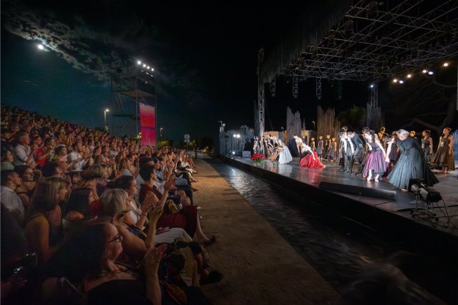 Maestralna baletna vizija Shakespeareova Hamleta u režiji i koreografiji Lea Mujića te izvedbi Baleta Hrvatskog narodnog kazališta Zagreb očarala je festivalsku publiku u parku Gradac, koja je cijeli autorski tim ispratila dugotrajnim pljeskom i ovacijama.
