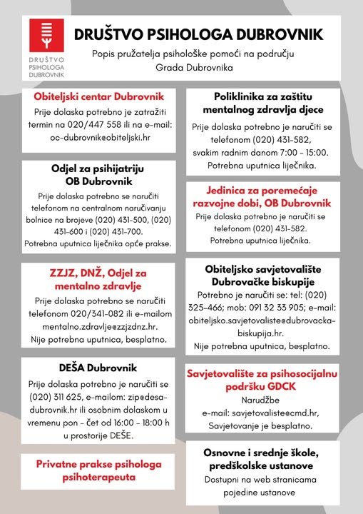 • Psihološki centar TESA: 01 4828 888