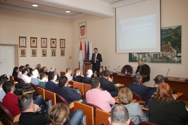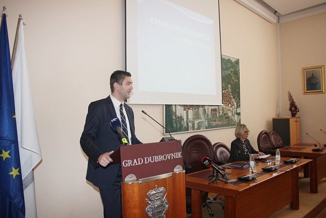 Ispred Vodovoda Dubrovnik, prezentaciju je održao Vicko Begović koji je izvijestio koje su sve aktivnosti poduzete po pitanju sanacije kanalizacije Grada, a koje se tek očekuju.
