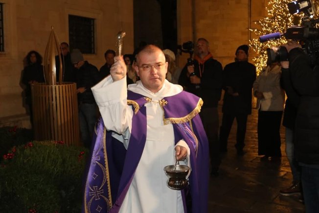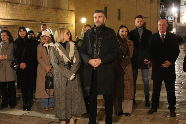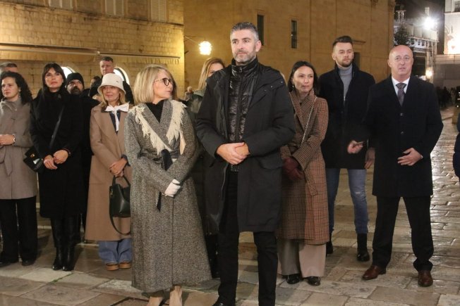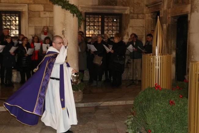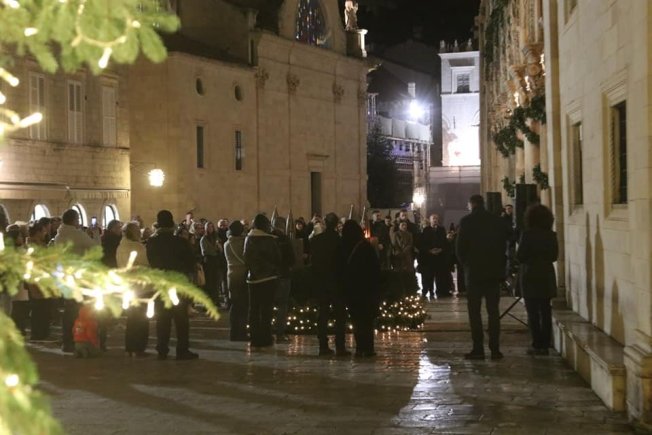 Gradonačelnik Mato Franković upalio je prvu svijeću na adventskom vijencu ispred Kneževa dvora, uz službu riječi i zbor župe sv. Križa Gruž.