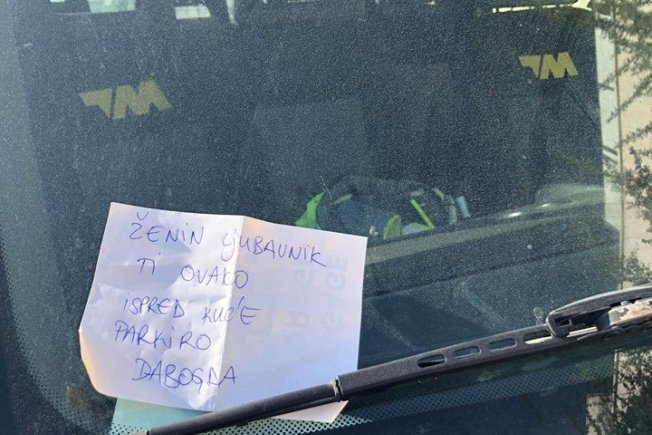 "Ženin ljubavnik ti ispred kuće ovako parkirao dabogda", pisalo je na papiriću.