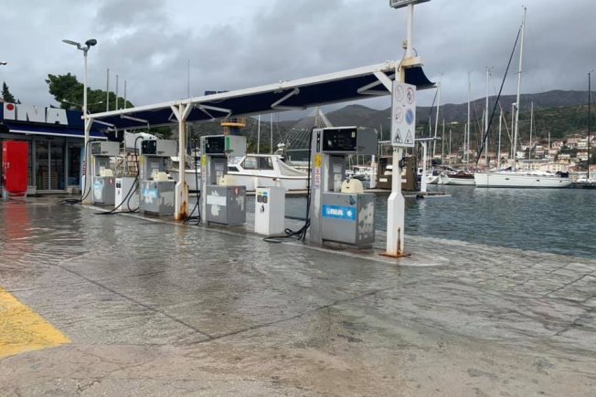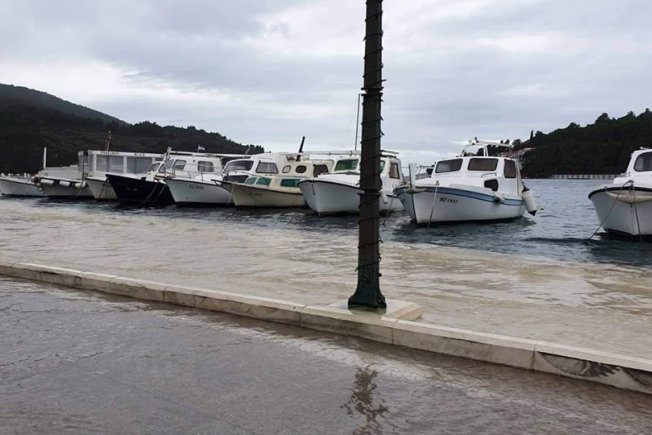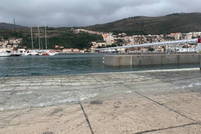 Udlijed kišnog nevremena koje je danas pogodilo Dubrovnik poplutala je Lapadska obala, kao i riva u Veloj Luci.