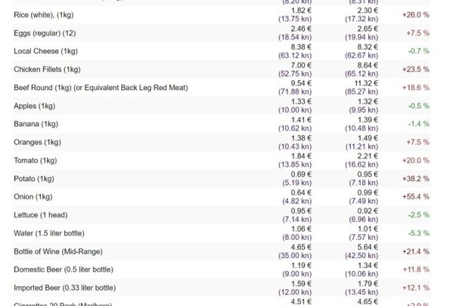 Što se tiče cijena u butigama u Dubrovniku je jeftinije mlijeko, riža, pileći fileti, govedina, pomadore, patate, luk, vino srednje kvalitete i pivo.