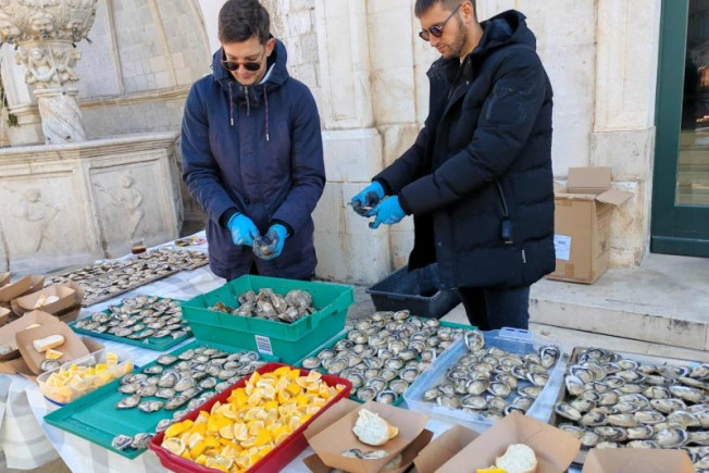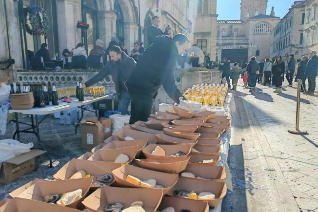 Nakon koncerta Turistička zajednica grada Dubrovnika počastila je publiku kamenicama i pjenušcem.