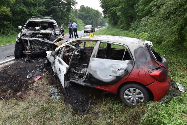 Toyota i Jeep frontalno su se sudarili nakon čega su se i zapalili, kako se vidi na fotografijama koje je objavio portal eMeđimurje.