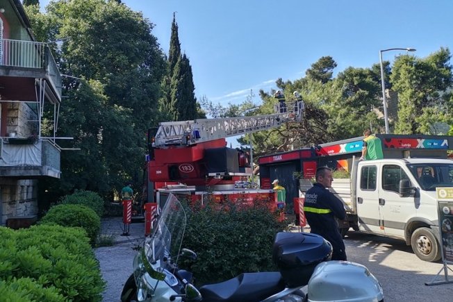Vatrogasci pilali osušeno stablo na Pošti Lapad (FOTO)
