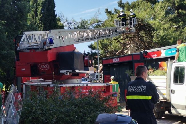 Osušeno stablo na Pošti Lapad vatrogasci su sanirali budući da prijeti opasnost od suhih grana koje bi, ako bi pale, ozbiljno zaprijetile sigurnosti na ovoj važnoj dubrovačkoj prometnici.