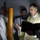 Uslijedila je procesija do oltara u kojoj je đakon don Tomislav Sikavica tri puta svijeću podizao u vis uz pjevani navještaj: “Svjetlo Kristovo”, na što je vjernička zajednica pjevajući odgovarala: “Bogu hvala”. Svjetlo sa uskrsne svijeće potom se predavalo vjernicima koji su na njemu palili svoje svijeće. Uz upaljenje svijeće koje su vjernici stojeći držali u rukama Josip Hađinac je otpjevao svečani hvalospjev uskrsnoj svijeći, Exsultet.