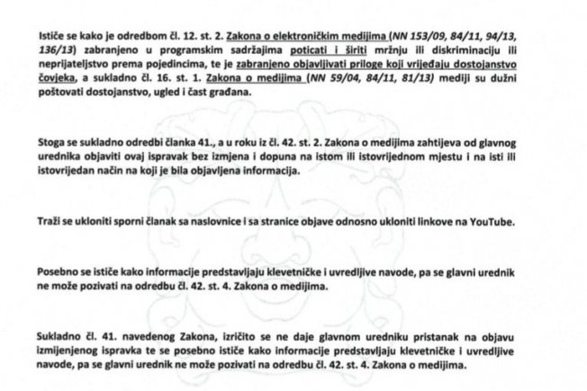 Igor Legaz može biti aktivist, ali mora razlikovati granice aktivizma u odnosu na granice destrukcije i anarhizma. Zakon je za sve jednak. Također, jasno je i pozdravljamo pravo medija da prenesu zbivanja, ali ne smiju davati prostor da netko vrijeđa niti prenositi linkove na takva vrijeđanja, jer time i medij postaje dionik tog vrijeđanja.