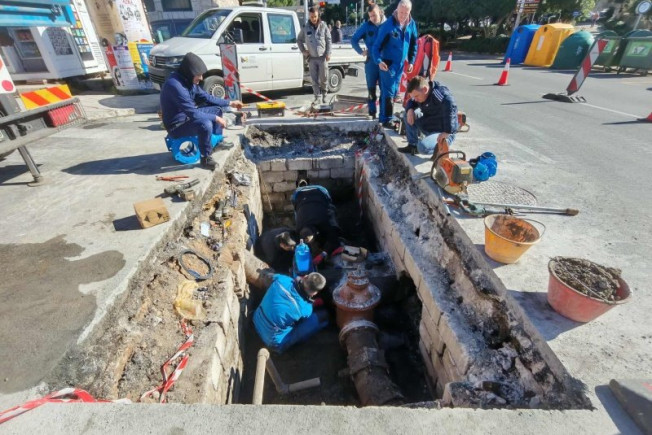 Na raskrižju Ulice Pera Čingrije i Ulice bana Josipa Jelačića, iza semafora kod Doma zdravlja, izvode se radovi na zamjeni vodovodnog ventila.