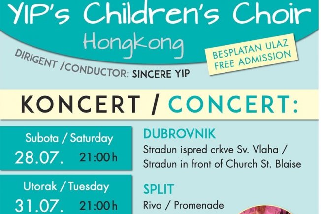 "YIP CHILDREN`S CHOIR“ iz Hong Konga nastupit će ispred crkve sv.Vlaha s početkom u subotu, 28. srpnja u 21 sat.