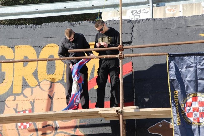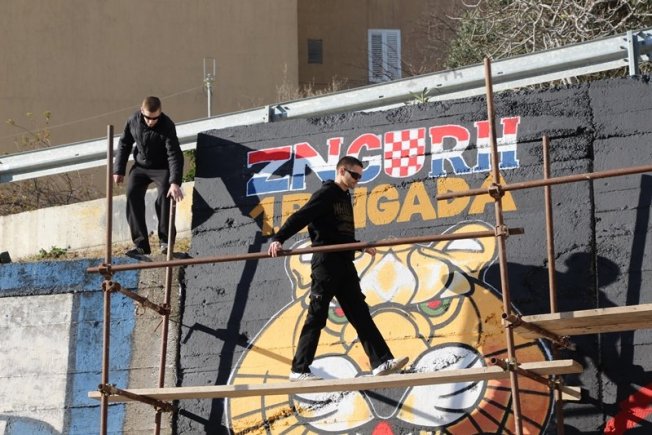 'VESELO' NA ULAZU U MOKOŠICU Torcida i Udruga branitelja Dubrovnika brane brisanje murala (FOTO/VIDEO)