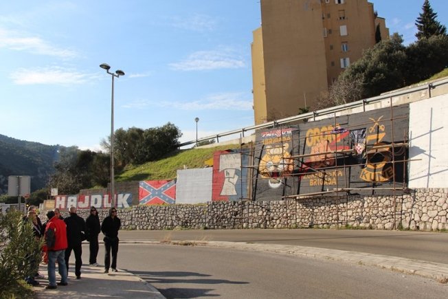 Radnici Tehnogradnje ubrzo su napustili teren, no pripadnici Torcide i Udruge su još zadržali ispred murala obzirom kako je njihovo brisanje najavljeno za danas, a skele za radove su postavljene. Potrebe za policijskom intervencijom nije bilo.