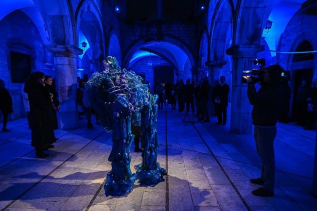 „U fokusu je izložbe prvi rad nastao unutar ovog projekta - skulptura sačinjena od pronađenih plastičnih boca u moru koji figurativno, ali i metaforički, tvore veliko čudovišno biće koje baca sjenu na ljudsku bezobzirnost i dalekosežne posljedice koje ona izaziva. Lobaš Kukavičić ovdje poseže za taktikom cirkularne ekonomije koja se vodi principom o recikliranju i ponovnoj upotrebi predmeta unutar lanaca izrazito konzumerističkog društva. Društva gdje neprestana težnja za ostvarivanjem materijalnosti ne jenjava, već se pak putem digitalnih tehnologija još više naglašava i provodi. Umjetnica poseže za istim tim novim tehnologijama, ali koristeći ih u drugom smjeru: umjetnički rad tako uključuje projekciju u samoj impozantnoj arhitekturi renesansne Palače Sponza, koja simbolički utjelovljuje mjesto trgovanja i izmjene dobara u doba Dubrovačke Republike. Ambijentalna osvijetljenost spomenute skulpture popraćena glazbenim predloškom “The Big Blue” francuskog skladatelja Erica Serre upravo promatrača opominju na negativne posljedice našeg djelovanja u svijetu na mikrorazini svakodnevnog života gdje nesvjesno donosimo odluke o tzv. malim životnim problemima poput bacanja smeća koje imaju dalekosežne posljedice za sve buduće generacije kojima ostavljamo svijet“ – (tekst kustosice: Jelena Tamindžija Donnart)