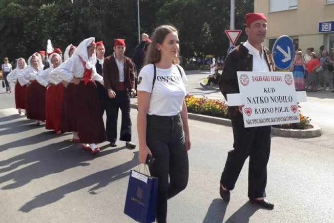 "Otputovali smo u petak i stigli na svečano otvaranje koje se održalo na prepunom Trgu J.J. Strossmayera, ispred impozantne đakovačke katedrale. U subotu popodne smo imali prvi nastup na ljepoj pozornici u Strossmayerovom parku na nastupu gostujućih skupina. Nedjelja je po običaju rezervirana za najsvečaniji dio Smotre, a to je svečana povorka koja je ove godine imala 51 folklornu skupinu sa preko 2500 sudionika. Za trajanja svečane povorke u dužini od dva kilometra smo kratko predstavili svoj otok prikazujući dio naše mljetske poskočice pred svečanom ložom koja je bila ispred katedrale, gdje je uz ostale visoke uzvanike bila i predsjednica Republike Kolinda Grabar-Kitarović.