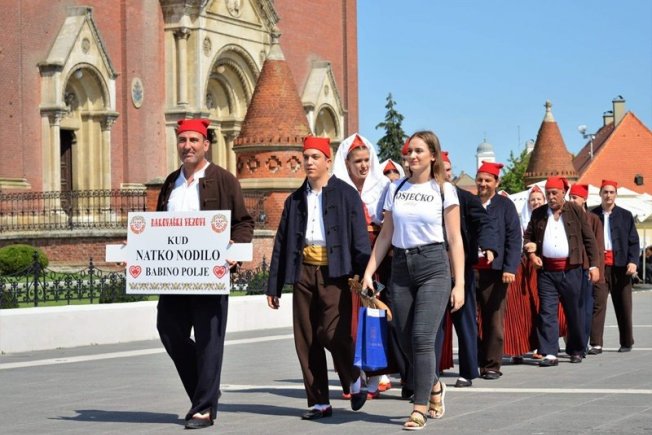 Već tradicionalno nakon svečane povorke po jedan par iz svakog Društva sudionika, na trgu sudjeluje u zajedničkom svečanom kolu. Nas su predstavljali Nikoleta i Josip. Nakon svečane povorke i kratke okrijepe još jednom smo nastupili na pozornici u Strossmayerovom parku na Smotri folklora Hrvatske.