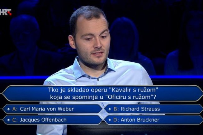 Riječ je ujedno o iznosu s kojim se oprostio od nastupa u kvizu jer je odustao na sljedećem, 13. pitanju za 250.000 kuna. Naime, nije znao je li Carl Maria von Weber, Richard Strauss, Jacques Offenbach ili Anton Bruckner skladatelj opere "Kavalir s ružom" koja se spominje u "Oficiru s ružom".