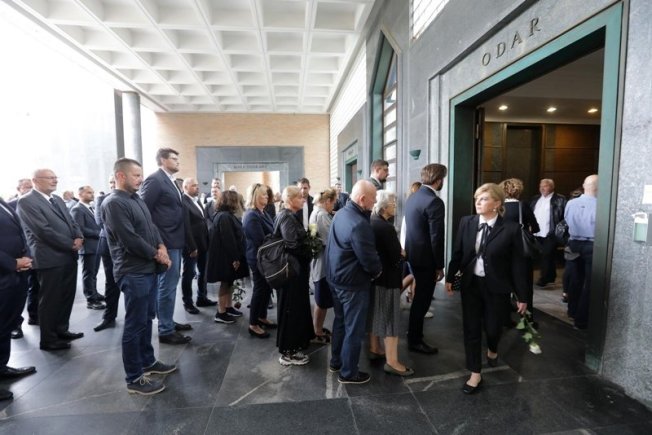Pred ulazom u Veliku dvoranu Krematorija, brojni okupljeni u redu čekaju kako bi izrazili sućut obitelji i posljednji puta pozdravili svog prijatelja, suradnika, kolegu novinara koji je preminuo 18. kolovoza u 49. godini života.