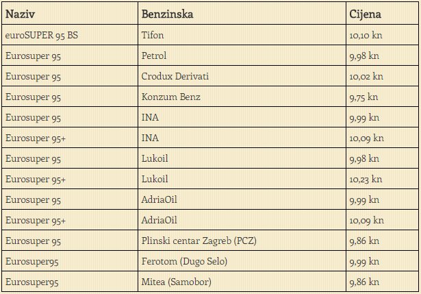 Evo kako sada stoje stvari, prema portalu CijeneGoriva.info.