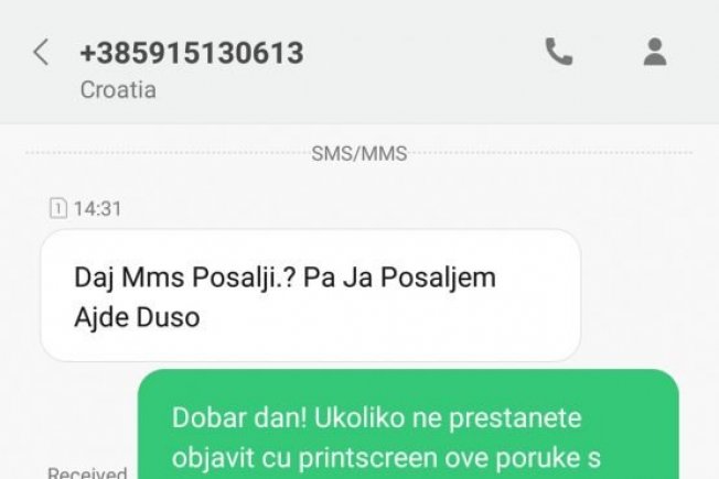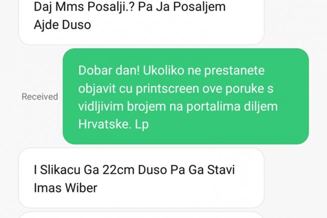Netko je očito odlučio svoje vrijeme skratiti slanjem uznemirujućih poruka gnjusnog sadržaja na različite brojeve telefona.