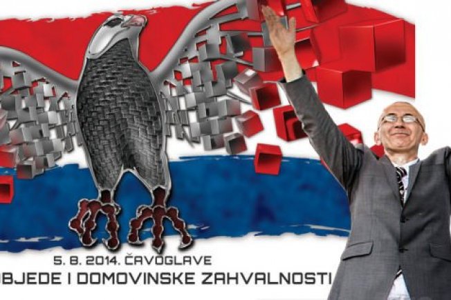Uz ovu obavijest priložen je i svojevrsni "plakat" Thompsonovog okupljanja, na kojem na stiliziranoj hrvatskoj zastavi, umjesto grba, središnju poziciju zauzima ptica grabežljivica raširenih krila, a sa strane se nalazi fotografija ratnog zločinca Darija Kordića.