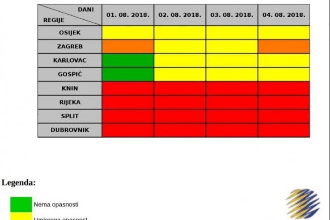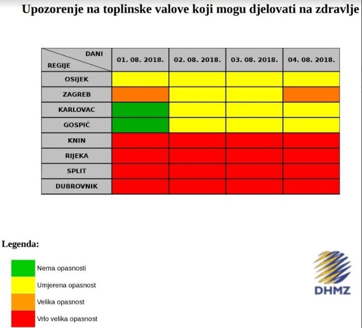 Prema Državnom hidrometeorološkom zavodu za Dubrovačko-neretvansku županiju za razdoblje od 1. do 4. kolovoza prognozirana je vrlo velika opasnost od toplinskog vala.