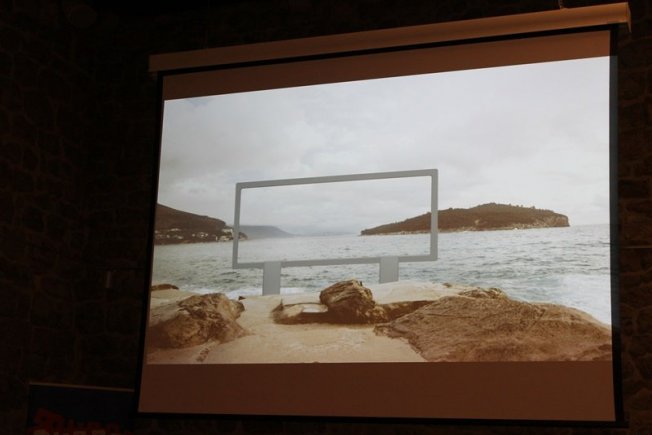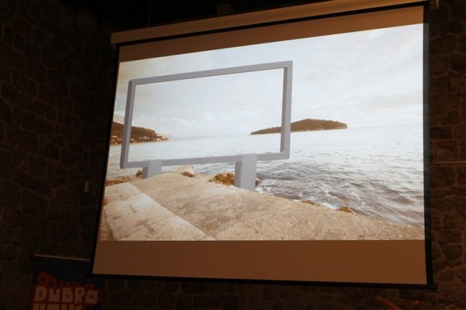 'Radi se o jednoj ideji koju sam počeo razvijati sa studentima na Umjetničkoj akademiji u Osijeku, a onda sam je prilagodio Dubrovniku. Optimalna situacija za ovaj rad, a to je recimo objekt koji je ujedno i neka vrsta instalacije, bila bi na zemljištu koje gleda na istok. Ideja je bila, kako i naziv rada kaže, 'kinozora'. Znači jedan okvir koji bi omogućio u jednom trenutku dana, a to je recimo nekih 10-15 minuta prije izlaska sunca. Tada bi se u okviru simulirala neka 'real time kino prezentacija', objasnio je Frelih.