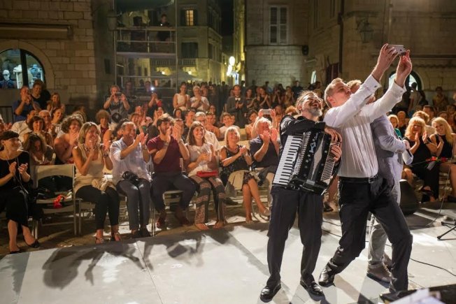 Iako uz sat vremena odgode zbog kiše, vrhunski pijanisti Matej Meštrović, Matija Dedić i Hakan Ali Toker, koji se predstavio i kao virtuozan harmonikaš, nastupili su sinoć na 67. Dubrovačkim ljetnim igrama i praizveli „Četiri godišnja doba za tri klavira“ ispred Kneževa dvora.