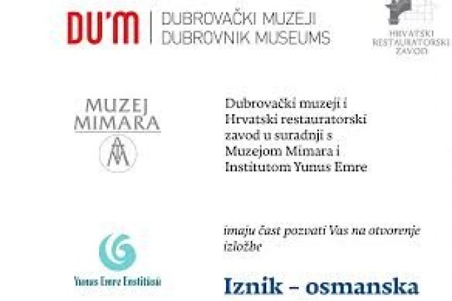 Dubrovački muzeji i Hrvatski restauratorski zavod u suradnji s Muzejom Mimara i Institutom Yunus Emre u petak, 15. srpnja otvaraju izložbu ''Iznik – osmanska keramika iz dubine Jadrana'' u žitnici ''Rupe'' s početkom u 20 i 30 sati.