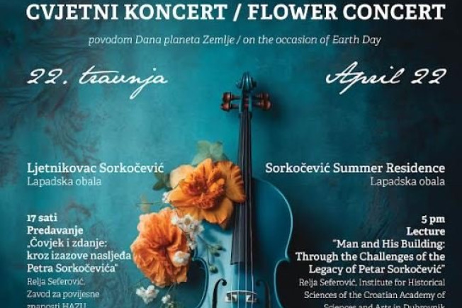 Turistička zajednica grada Dubrovnika organizira Cvjetni koncert povodom obilježavanja Dana planeta Zemlje, koji će se održati u srijedu, 22. travnja, u prekrasnom ambijentu ljetnikovca Sorkočević na Lapadskoj obali.