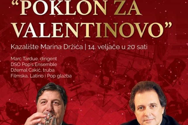 orkestra, u Kazalištu Marina Držića, 14. veljače s početkom u 20 sati. Nastup DSO Pop'S Ensemble uz maestra Marca Tarduea te slavnog trubača Džemala Cakića izvest će latino, pop i popularnu filmsku glazbu. Naša će publika uživati u temama filmova poput Titanika, Ratova Zvijezda, Igre prijestolja i slično. Ulaz je besplatan, a za sudjelovanje na koncertu potrebna je COVID potvrda.