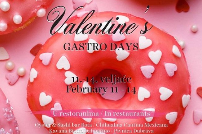 U suradnji s dubrovačkim restoranima organizirani su „Valentinovo gastro dani“, u kojima sudjeluje 14 restorana koji su pripremili posebne i maštovite menije za sve zaljubljene, a to su Oyster & Sushi Bar Bota, Chihuahua Cantina Mexicana, Kavana Bistro Dalmatino, Pivnica Dubrava, Food bar Guloso, Hotel Lero – Piano bar, Taverna Loggia, Restoran Lucin Kantun, Marangun food & bar room, Rhea Silvia Wine & Tapas Bar, Restoran Umi Teppanyaki – Rixos Premium Dubrovnik, Restoran Turquoise – Rixos Premium Dubrovnik, Sunset Beach Dubrovnik, Restoran Taj Mahal - Hotel Lero.