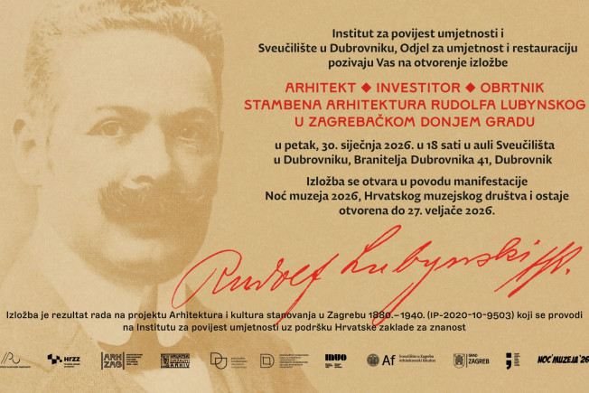 U okviru manifestacije Noć muzeja 2026, u petak 30. siječnja 2026. u 18 sati, u Auli Sveučilišta u Dubrovniku (Branitelja Dubrovnika 41) bit će otvorena izložba „Arhitekt – investitor – obrtnik: Stambena arhitektura Rudolfa Lubynskoga u zagrebačkom Donjem gradu“.